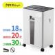 20分連続使用可能で、18枚同時細断できるクロスカット仕様。DVDやCDも細断可能で、ホッチキス針をつけたままでも細断できる。空間を明るく見せる白基調デザインで、オフィスでも家庭でも馴染みやすい電動シュレッダー。